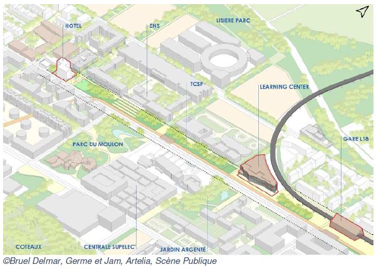 Cet appel à projet avait pour objet de désigner un groupement d'opérateurs et de gestionnaires qui assurent solidairement la réalisation et l'exploitation d'un hôtel de gamme 3/4 étoiles d'environ 110 chambres dans le quartier de Moulon, au sein du campus urbain Paris-Saclay.